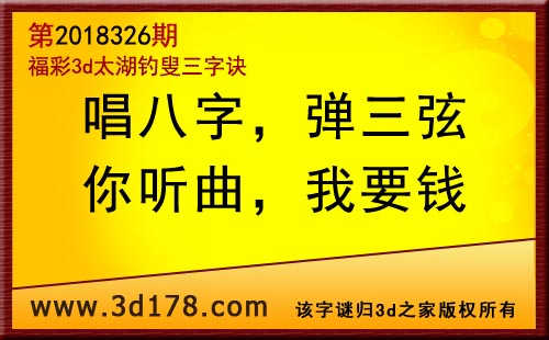 3d第18326期太湖字谜:唱八字,弹三弦,你听曲,我要钱