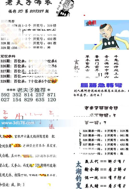 福彩3d第2018329期老夫子布衣图详情: