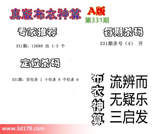 3d之家布衣图库之布衣神算图第2018331期详解: