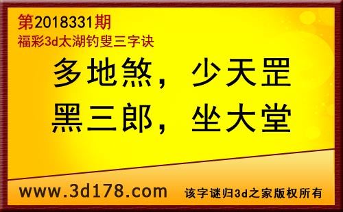3d第18331期太湖字谜:多地煞,少天罡,黑三郎,坐大堂