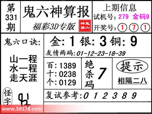 3d第18331期鬼六神算报为您推荐鬼六口诀: