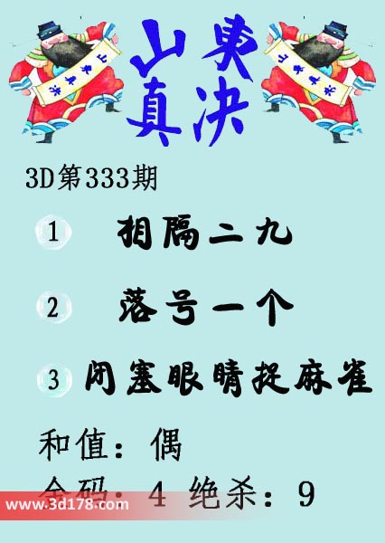 福彩3d第18333期山东真诀图如下所示: