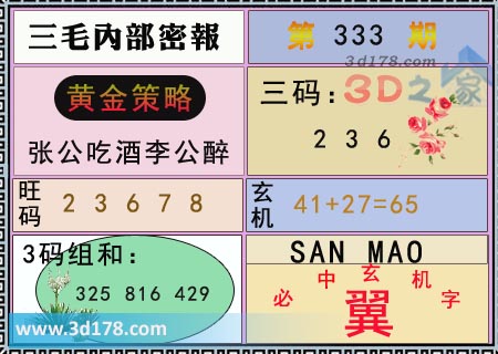 福彩3d第18333期三毛内部密报综合推荐如下: