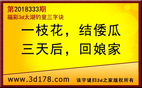 3d第18333期太湖字谜:一枝花,结倭瓜,三天后,回娘家