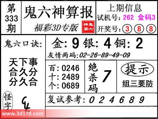 3d第18333期鬼六神算报为您推荐鬼六口诀: