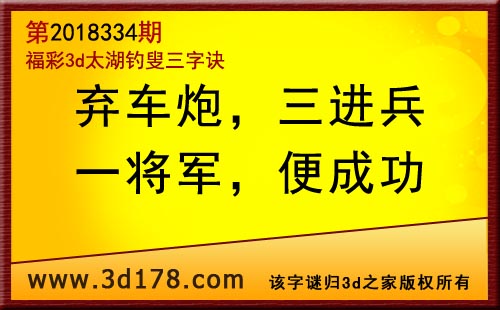 3d第18334期太湖字谜:弃车炮,三进兵,一将军,便成功