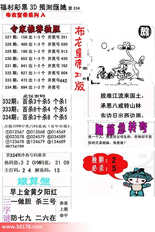 福彩3d第2018334期布衣皇帝A版布衣专家独家推荐: