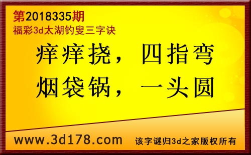 3d第18335期太湖字谜:痒痒挠,四指弯,烟袋锅,一头圆
