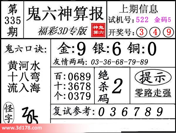 3d第18335期鬼六神算报为您推荐鬼六口诀: