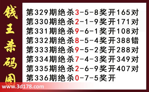 近期3d钱王杀码具体详情: