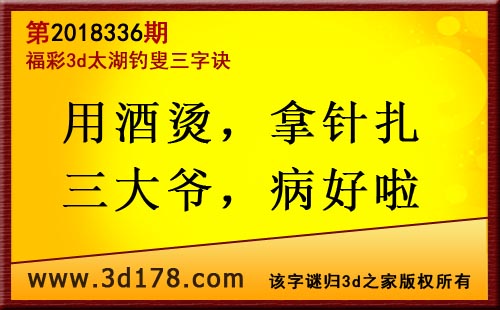 3d第18336期太湖字谜:用酒烫,拿针扎,三大爷,病好啦