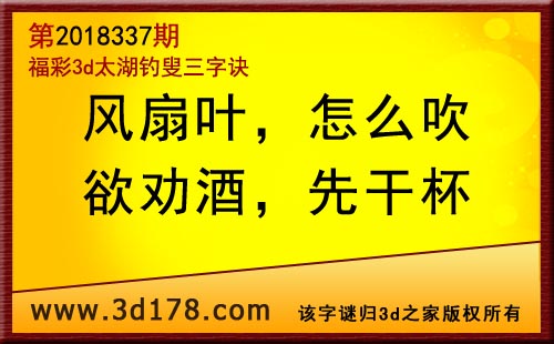 3d第18337期太湖字谜:风扇叶,怎么吹,欲劝酒,先干杯
