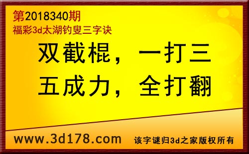 3d第18340期太湖字谜:双截棍,一打三,五成力,全打翻