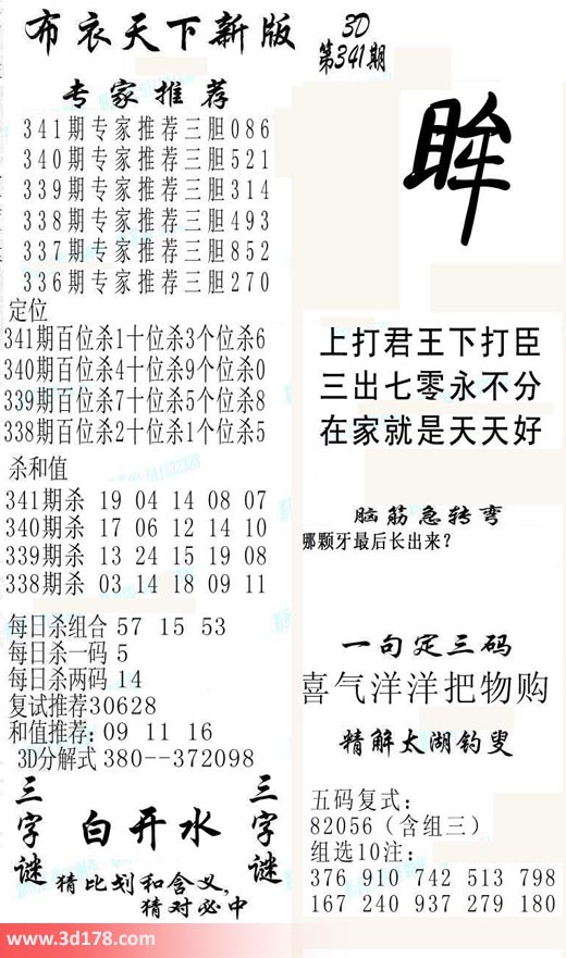 福彩3d第2018341期福彩3d布衣天下新版: