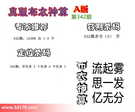 3d布衣神算第342期定位杀码: