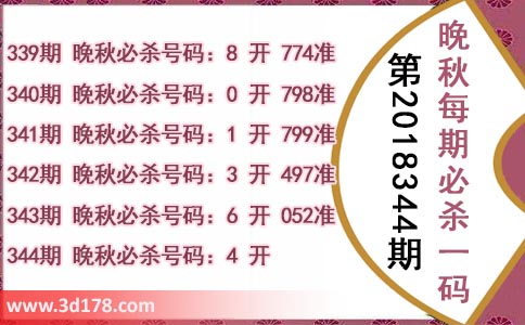 344期 晚秋必杀号码:4 开