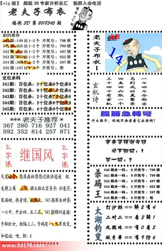 福彩3d第2018345期老夫子布衣图详情:
