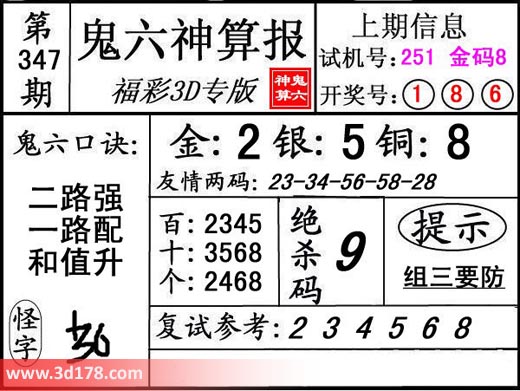3d第18347期鬼六神算报为您推荐鬼六口诀: