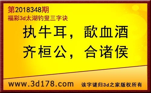 3d第18348期太湖字谜:执牛耳,歃血酒,齐桓公,合诸侯