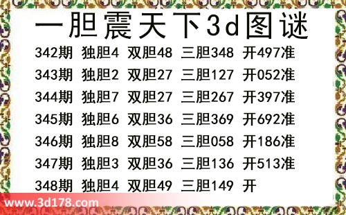 一胆震天下三胆图库由3d之家3d图库频道原创,仅供彩民参考,温馨提供。