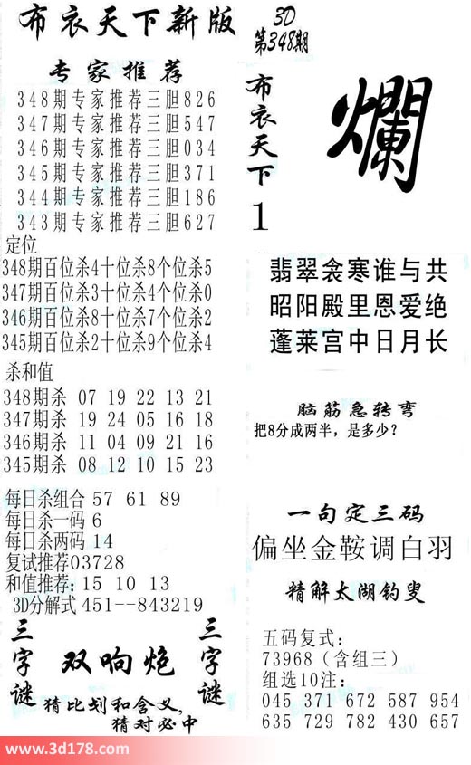 福彩3d第2018348期福彩3d布衣天下新版:
