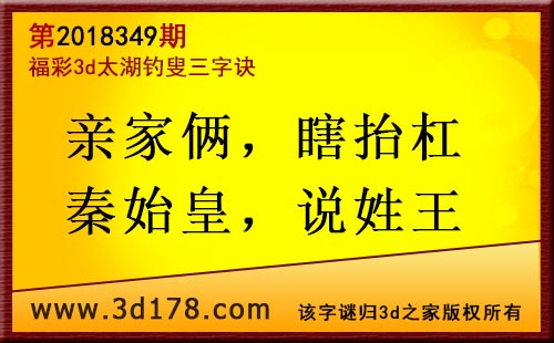 3d第18349期太湖字谜:亲家俩,瞎抬杠,秦始皇,说姓王
