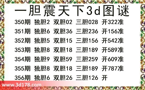 本期一胆震天下3d图谜:
