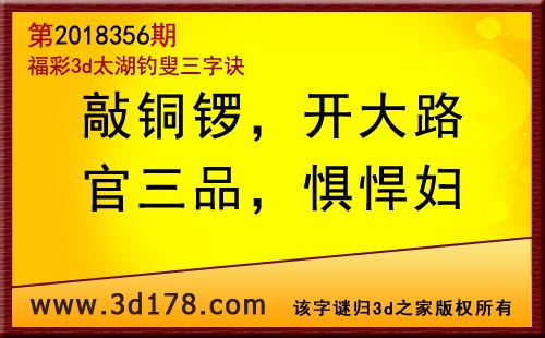 3d第18356期太湖字谜:敲铜锣,开大路,官三品,惧悍妇