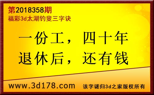 3d第18358期太湖字谜:一份工,四十年,退休后,还有钱