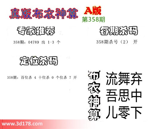 3d布衣神算第358期定位杀码: