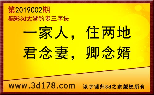 3d第19002期太湖字谜:一家人,住两地,君念妻,卿念婿