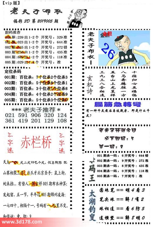 福彩3d第2019005期老夫子布衣图详情: