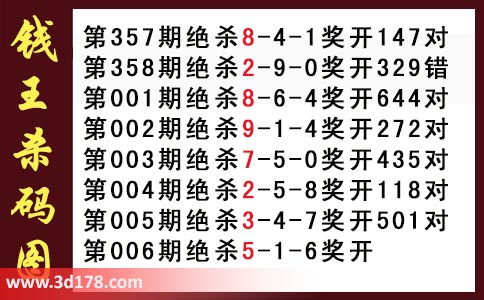 近期3d钱王杀码具体详情: