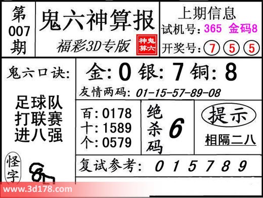 3d第19007期鬼六神算报为您推荐鬼六口诀: