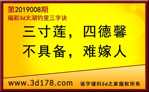 3d第19008期太湖字谜:三寸莲,四德馨,不具备,难嫁人