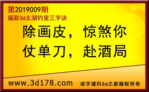 3d第19009期太湖字谜:除画皮,惊煞你,仗单刀,赴酒局