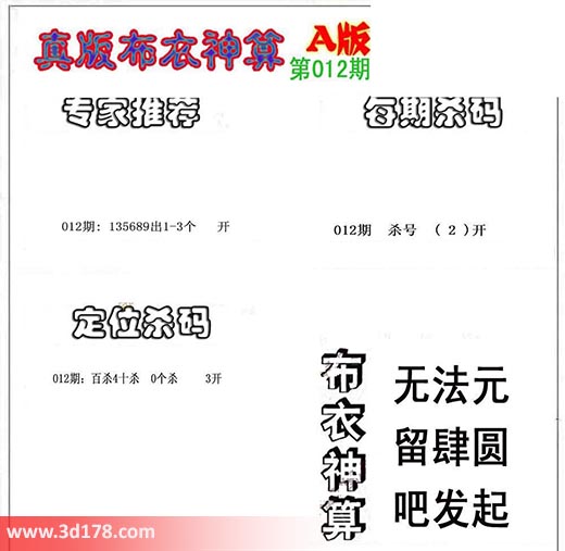 3d之家布衣图库之布衣神算图第2019012期详解: