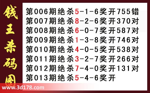 近期3d钱王杀码具体详情: