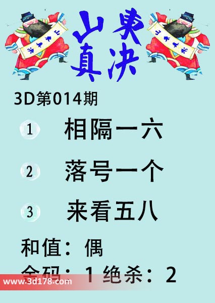 福彩3d第19014期山东真诀图如下所示: