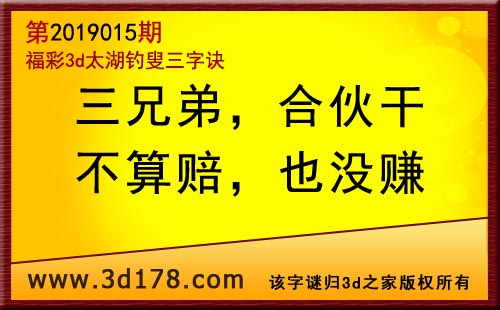 3d第19015期太湖字谜:三兄弟,合伙干,不算赔,也没赚