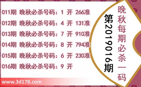 016期 晚秋必杀号码:9 开