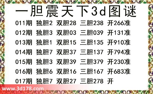 一胆震天下三胆图库由3d之家3d图库频道原创,仅供彩民参考,温馨提供。