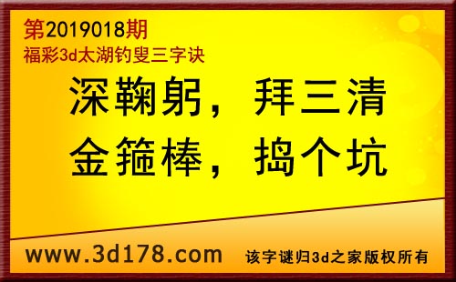 3d第19018期太湖字谜:深鞠躬,拜三清,金箍棒,捣个坑