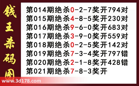 近期3d钱王杀码具体详情: