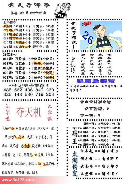 福彩3d第2019021期老夫子布衣图详情: