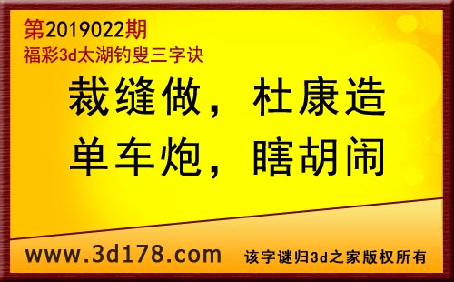3d第19022期太湖字谜:裁缝做,杜康造,单车炮,瞎胡闹