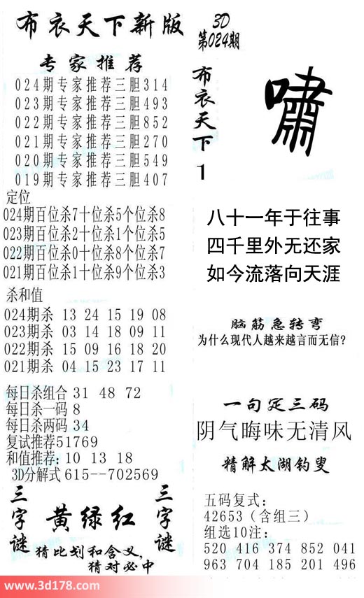 福彩3d第2019024期福彩3d布衣天下新版: