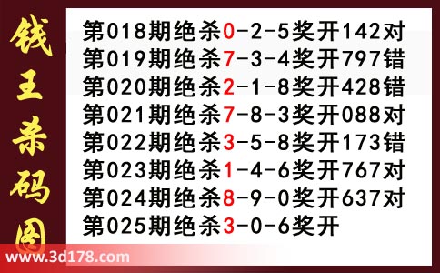 近期3d钱王杀码具体详情: