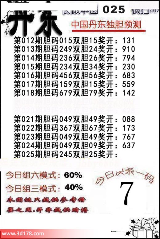 福彩3d第2019025期丹东解析:
