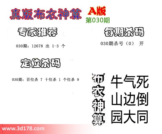 3d布衣神算第030期定位杀码: